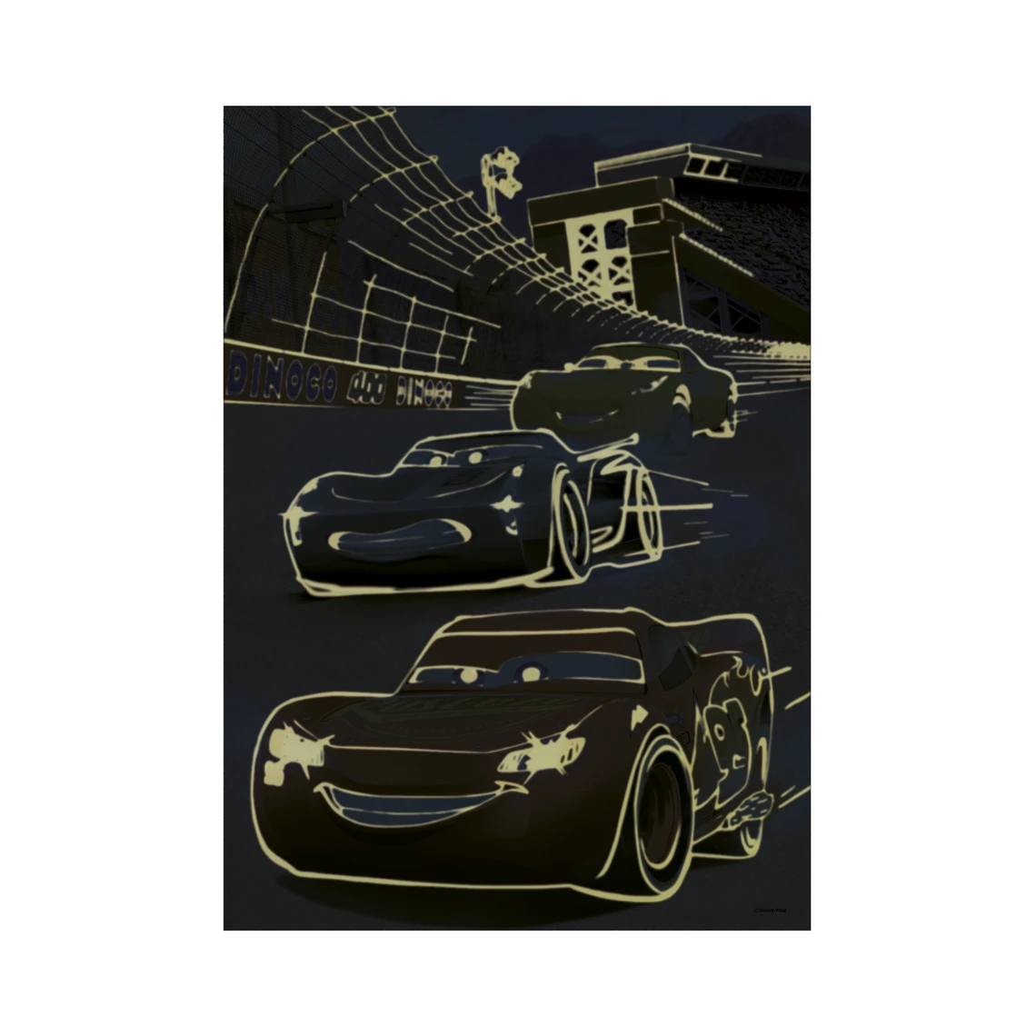 Известната количка Маккуин Светкавицата е готова да светне в детската Ви стая. Специален пъзел с неонови елементи светва веднага след като стаята се стъмни. Те ще видят очертанията на три формули – Маккуин Светкавицата, Джаксън Стром и Круз Рамирез. Големите части пасват много добре, така че дори деца на 5 и повече години могат лесно да сглобят пъзел от 100 части.