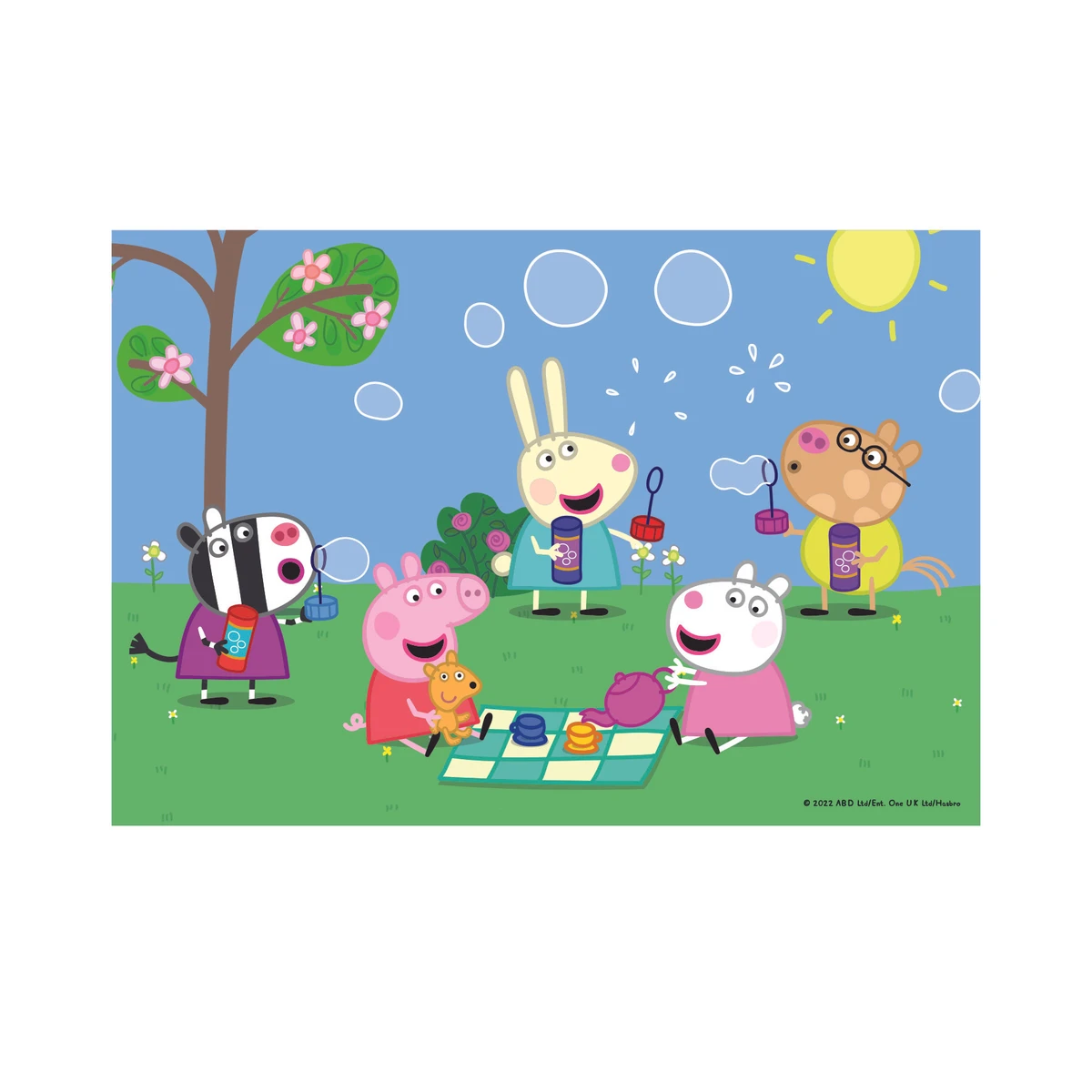Подреждането става още по-забавно с Peppa Pig и нейните приятели! Нашите пъзели носят безкрайно забавление и приключения за вашите деца. Съдържа 2 илюстрирани картини, всяка с 48 части, които оживяват сцени, пълни с радост и приятелство.С този пъзел можете не само да осигурите на вашите малчугани часове забавление, но и да подкрепите тяхната фина моторика и логическо мислене. Сглобяването на части от пъзел укрепва уменията на децата и помага за развитието на тяхната концентрация и пространствена ориентация. С пъзели, включващи Peppa Pig и нейните приятели Suzy, Emily, Danny, Pedro, Zoe, Candy и Rebecca, вашите деца могат да изследват и открият анимационния свят на Peppа Pig, пълен с игри, приключения и приятелства. Пъзелът е подходящ за деца над 4 години и е произведен от висококачествени и безопасносни продукти.